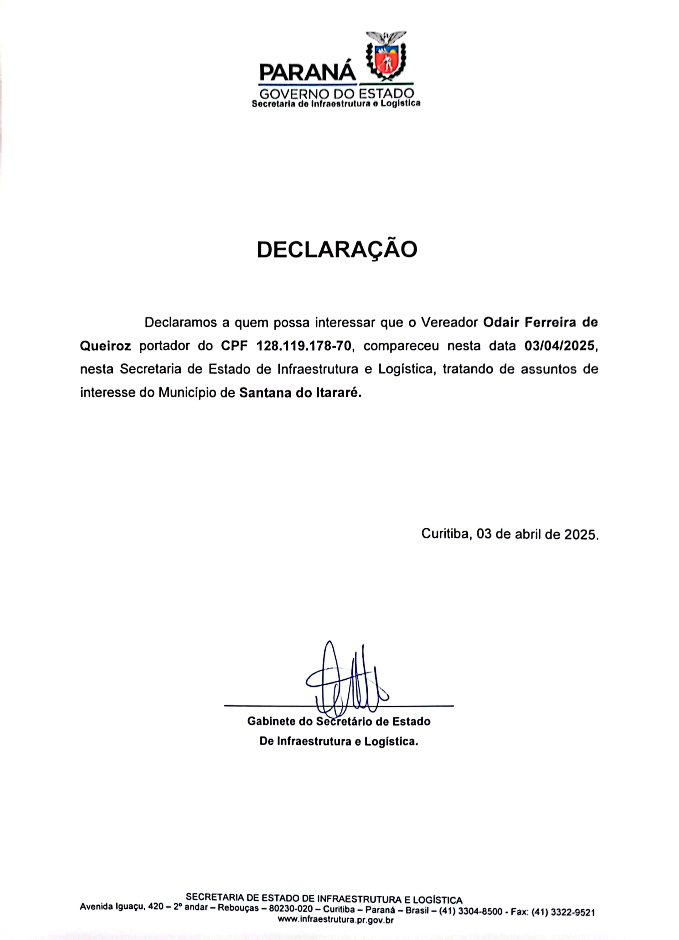SECRETARIA DE INFRAESTRUTURA E LOGÍSTICA - PR